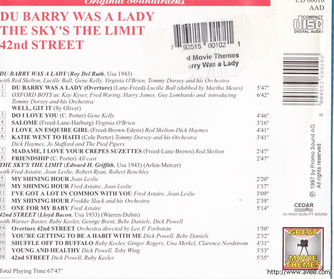 JAZZCD名称:Great Movie Themes Du Barry Was a Lady / The Sky's The Limit / 42nd Street