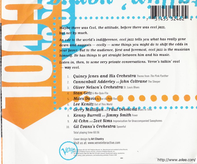 JAZZ CD名称:Cool Talkin' Verve艺术家名称: Various Artists发行编号:314 553 246-2发行日期:1997-03-25发行公司:Polygram Records