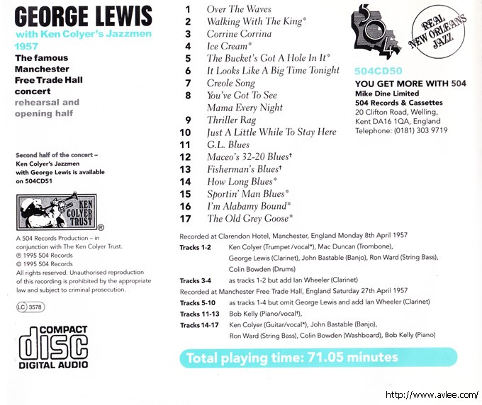 JAZZ CD名称:George Lewis With Ken Colyer's Jazzmen 1957 Vol.2