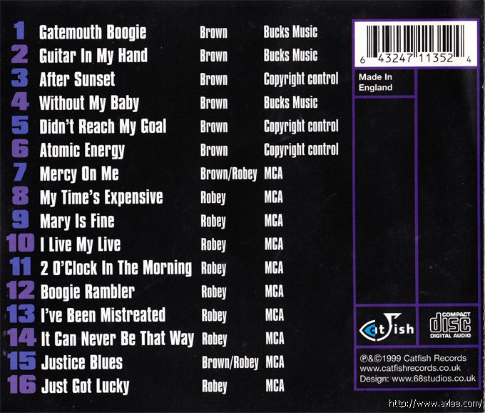 JAZZCD名称:Guitar in My Hand艺术家名称:Clarence "Gatemouth" Brown发行公司:CATFISH发行编号:KATCD 135发行日期:1999年