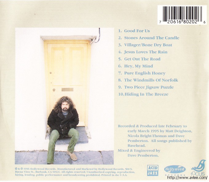 唱片曲目: 1 Good For Us 2 Stones Around The Candle 3 Villager/Bone Dry Boat 4 Jesus Loves The Rain 5 Get Out The Road 6 Hey, My Mind 7 Pure English Honey 8 Windmills Of Norfolk 9 Two Piece Jigsaw Puzzle 10 Hiding In The Breeze
