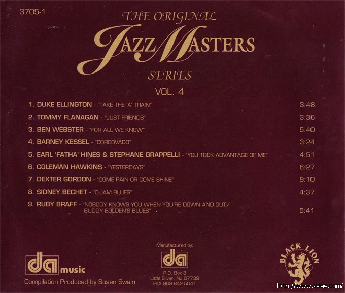 JAZZCD名称:The Original Jazz Masters (Series) Jazz Masters 4 艺术家名称:Various Artists发行公司:BLACK LION发行编号:3705-1发行日期:1995年