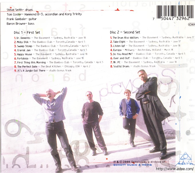 唱片曲目: Disc 1-First Set 01 Dr. Demento 02 Moby Dick 03 Swamp Stomp 04 Cranial Jam 05 Happy House 06 Fortaleza 07 First Thing This Morning 08 The Perfect Date 09 It's Jungle Out There Disc 2-Second Set 01 The Drum Also Waltzes 02 Take Eight 03 Listen Up 04 Europa 05 Do You Read Me? 06 Over and Out 07 MR. PC 08 Soulful Drums