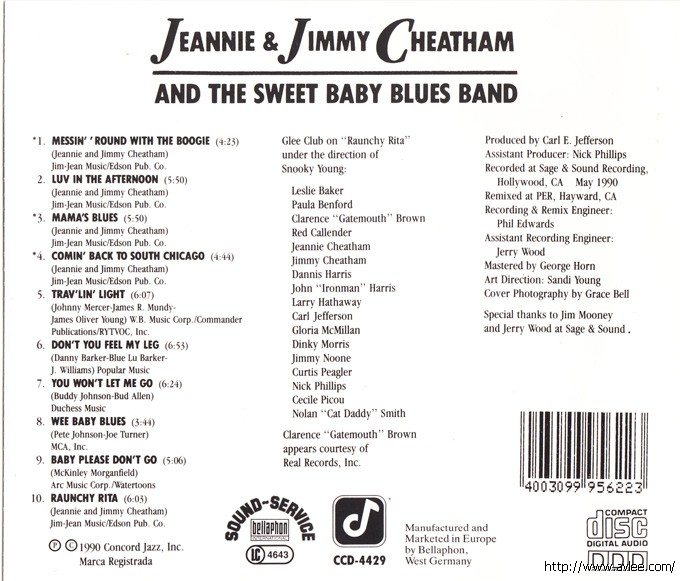 JAZZCD名称:Luv in the Afternoon艺术家名称:Jeannie & Jimmy Cheatham发行公司:CONCORD JAZZ发行编号:CCD-4429发行日期:1990年
