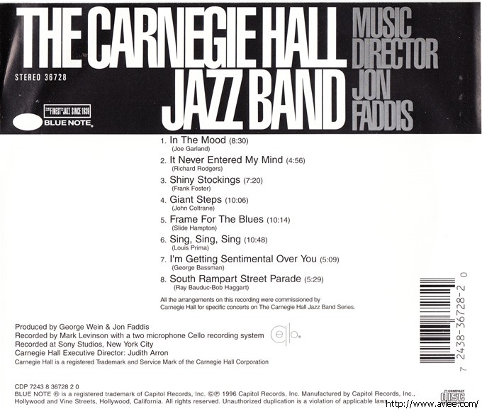 JAZZCD名称:The Carnegie Hall Jazz Band艺术家名称:The Carnegie Hall Jazz Band发行公司:BLUE NOTE发行编号:CDP 724383672820发行日期:1996年