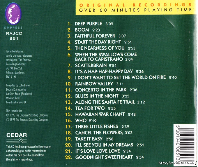JAZZCD名称:I'll See You in My Dreams艺术家名称:Guy Lombardo 发行公司:EMPRESS发行编号:RAJCD 851发行日期:1995年
