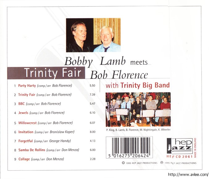 JAZZCD名称:Bobby Lamb Meets Trinity Fair艺术家名称:Bobby Lamb With Trinity Big Band发行公司:HEP JAZZ发行编号:HEP CD 2064发行日期:1995年