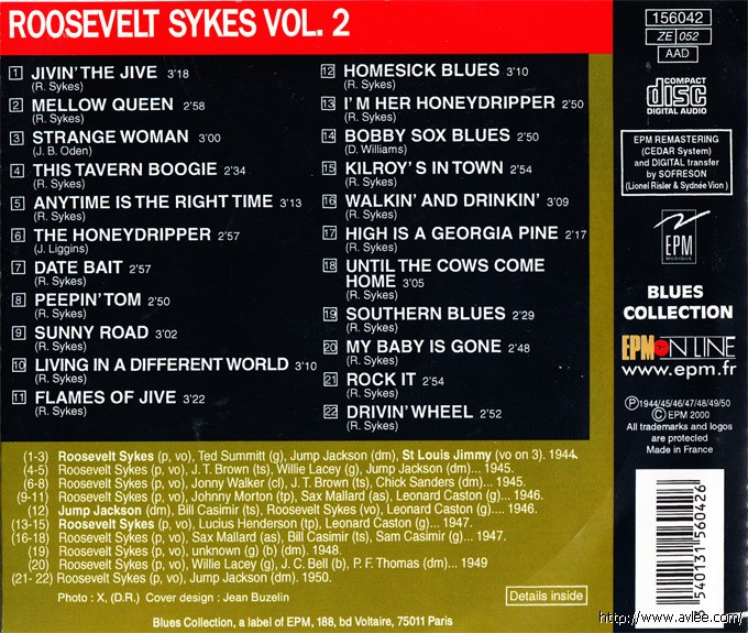 JAZZCD名称:1944-1950, Vol. 2: The Honey Dripper 艺术家名称:Roosevelt Sykes发行公司:EPM发行编号:156042发行日期:2000年
