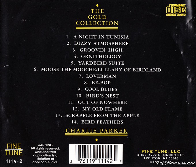 唱片曲目: 1 A Night In Tunisia 2 Dizzy Atmosphere 3 Groovin' High 4 Ornithology 5 Yardbird Suite 6 Moose the Mooche/Lullaby of Birdland: Moose The Mooche / Lullaby Of Birdland 7 Lover Man 8 BeBop 9 Cool Blues 10 Bird's Nest 11 Out of Nowhere 12 My Old Flame 13 Scrapple From the Apple 14 Bird Feathers