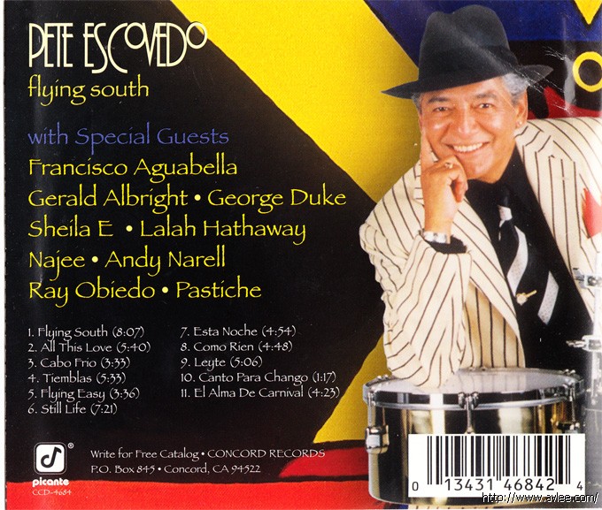 JAZZCD名称:Flying South 艺术家名称:Pete Escovedo 发行公司:CONCORD PICANTE发行编号:CCD-4684发行日期:1996年