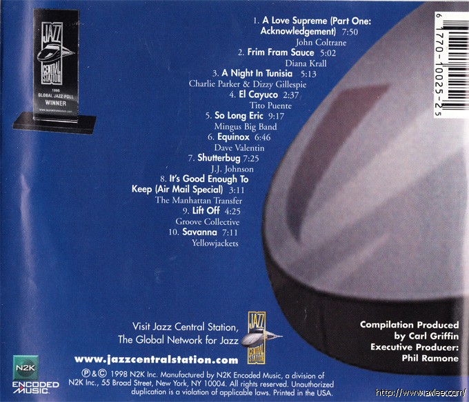 JAZZCD名称:Jazz Central Station Global Jazz Poll Winners, Vol. 1 艺术家名称:Various Artists发行公司:ENCODED MUSIC发行编号:N2K-10025发行日期:1998年