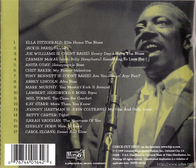 JAZZCD名称:Jazz Vocal Essentials, Vol. 2 艺术家名称:Various Artists发行公司:HIP-O发行编号:HIPD-40164发行日期:1999年