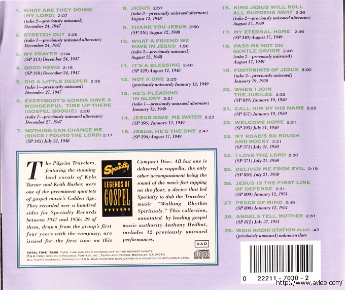 JAZZCD名称:Walking Rhythm 艺术家名称:Pilgrim Travelers发行公司:SPECIALTY发行编号:SPCD-7030-2发行日期:1992年