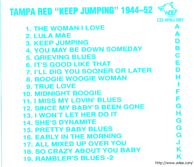 JAZZCD名称:Tampa Red"Keep Jumping" 1944-52 艺术家名称:Tampa Red发行公司:WOLF发行编号:CD-WBJ 001发行日期:1993年