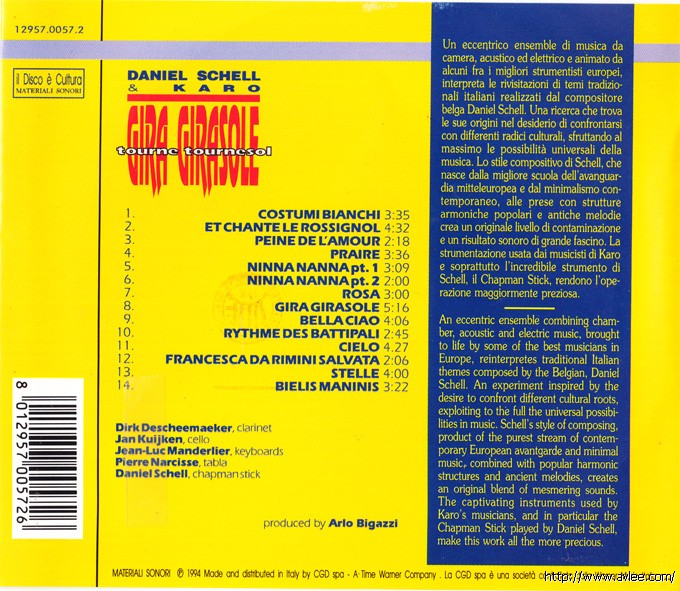 JAZZCD名称:Gira Girasole 艺术家名称:Schell, Daniel & Karo发行公司:MASO发行编号:CD 90057发行日期:1994年