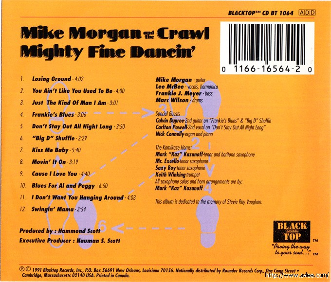 JAZZCD名称:Mighty Fine Dancin' 艺术家名称:Mike Morgan & The Crawl发行公司:BLACKTOP发行编号:CD BT 1064发行日期:1991年