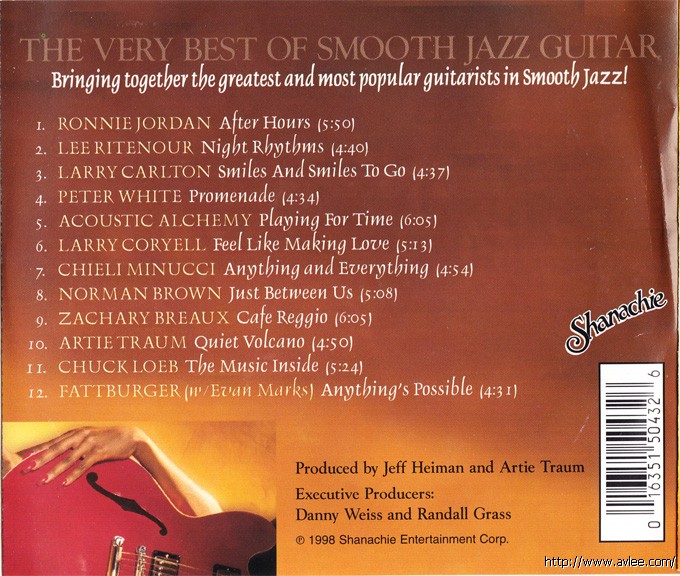 JAZZCD名称:The Very Best Of Smooth Jazz Guitar 艺术家名称:Various Artists发行公司:SHANACHIE发行编号:5043发行日期:1998年