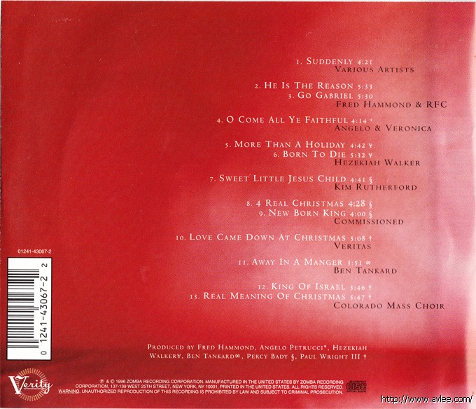 JAZZCD名称:Real Meaning of Christmas 艺术家名称:The Real Meaning Of Christmas (Series)发行公司:VERITY发行编号:01241-43067-2发行日期:1996年