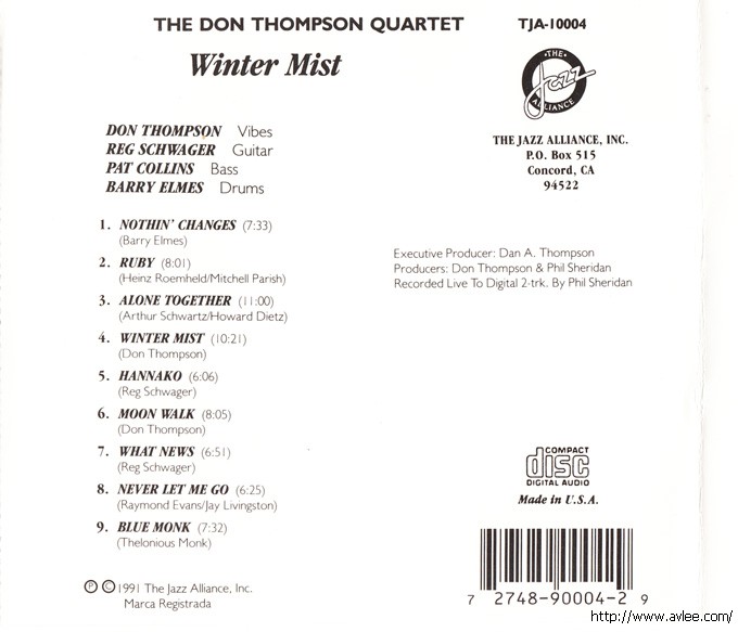 JAZZCD名称: Winter Mist艺术家名称:The Don thompson Quartet发行公司:THE JAZZ ALLIANCE发行编号:TJA 10004发行日期:1991年