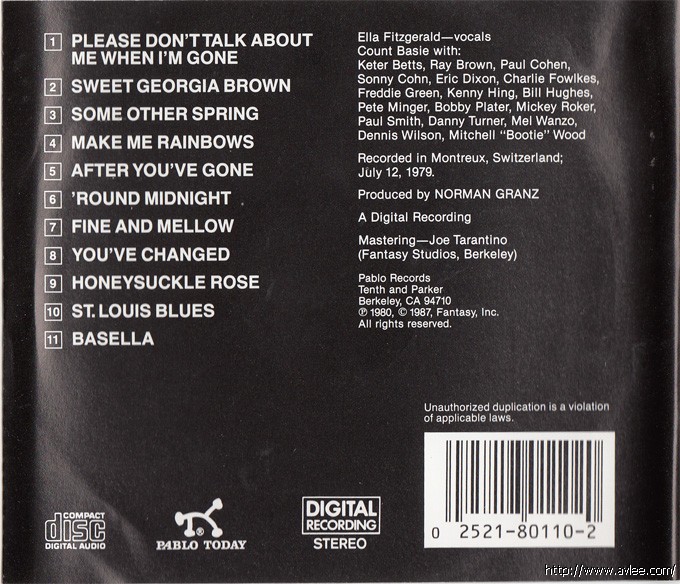 JAZZCD名称: A Perfect Match 艺术家名称:Ella Fitzgerald And Count Basie发行公司:STEREO PABLO发行编号:PACD-2312-110-2发行日期:1987年