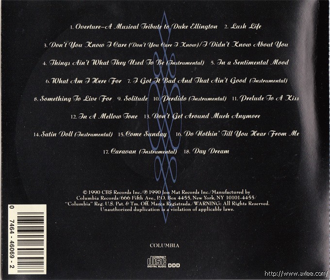 JAZZCD名称:In a Sentimental Mood: Mathis Sings Ellington艺术家名称:Johnny Mathis发行公司:COLUMBIA发行编号:CK 46069发行日期:1990年