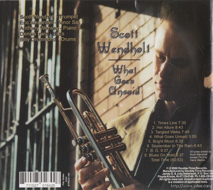 JAZZCD名称:What Goes Unsaid 艺术家名称:Scott Wendholt发行公司:DOUBLE TIME发行编号:DTRCD-164发行日期:2000年
