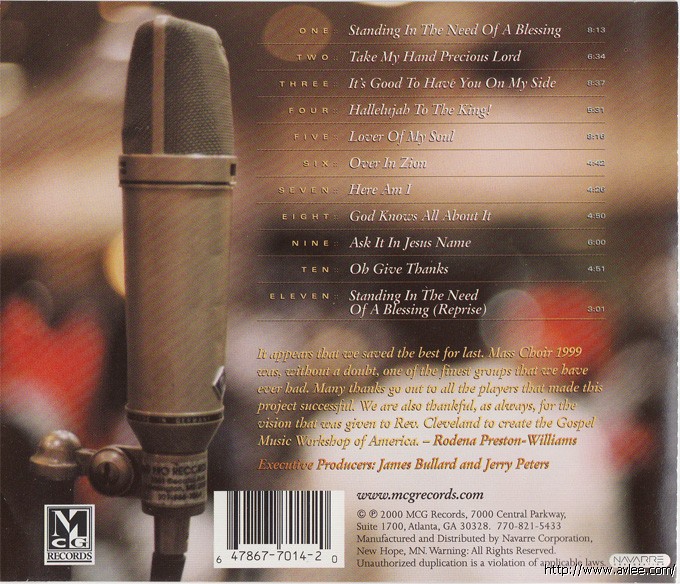 JAZZCD名称:Standing In The Need Of A Blessing 艺术家名称:Rev James Cleveland's GMWA Mass Choir发行公司:MCG RECORDS发行编号:MCG 7014-2发行日期:2000年