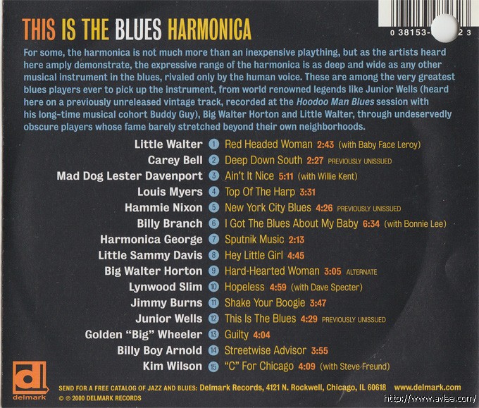 JAZZCD名称:This Is the Blues Harmonica 艺术家名称:Various Artists发行公司:DELMARK发行编号:DE-746发行日期:2000年