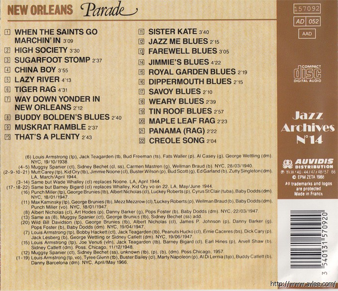 JAZZCD名称:NEW ORLEANS PARADE 14 艺术家名称:Various Artists 发行公司:EPM发行编号:157092发行日期:1988年