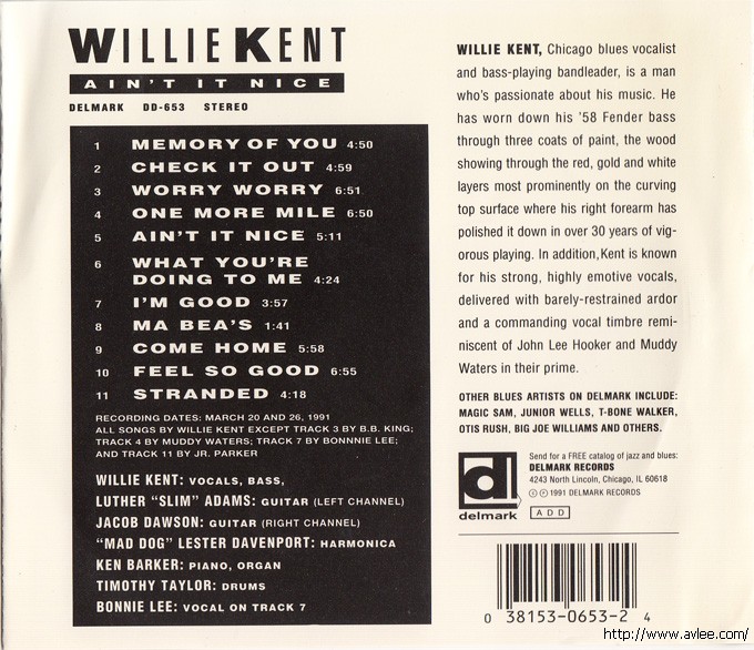 JAZZCD名称:Ain't It Nice 艺术家名称:Willie Kent 发行公司:DELMARK 发行编号:DD-653 发行日期:1991年 唱片美图: