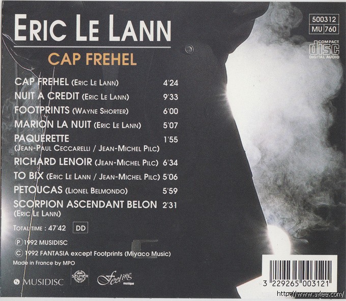 JAZZCD名称:Cap Frehel 艺术家名称:Eric Le Lann 发行公司:MUSIDISC发行编号:500312发行日期:1992年