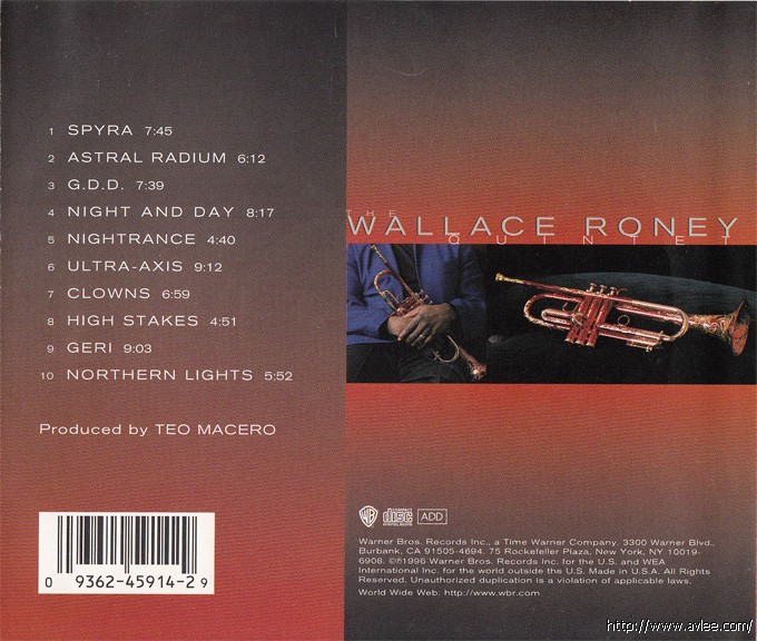 JAZZCD名称:Wallace Roney Quintet 艺术家名称:Wallace Roney 发行公司:WARNER BROS发行编号:9459142发行日期:1996年