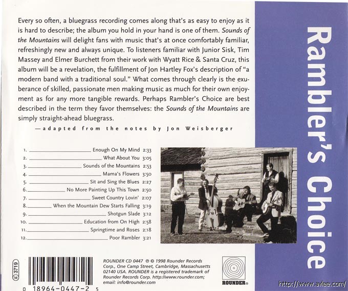 JAZZCD名称: Sounds of the Mountains 艺术家名称:Rambler's Choice发行公司:ROUNDER 发行编号:CD 0447发行日期:1998年