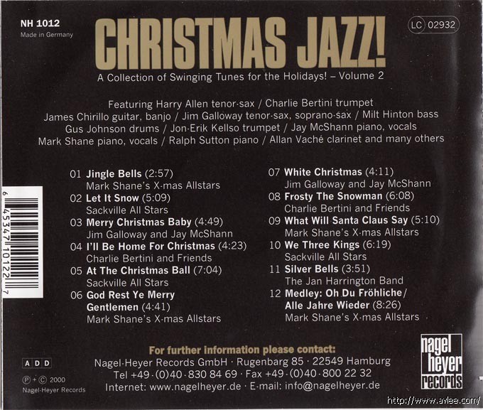 JAZZCD名称:Christmas Jazz! Vol. 2艺术家名称:Various Artists发行公司:Nagel Heyer Records发行编号:NH 1012发行日期:2000年