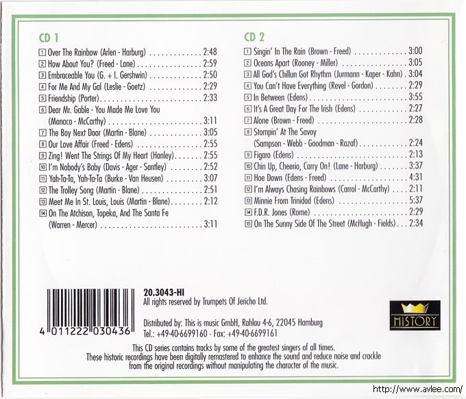 JAZZCD名称:I'm Nobody's Baby艺术家名称:Judy Garland 发行公司:HISTORY发行编号:20.3043-HI发行日期:1969年