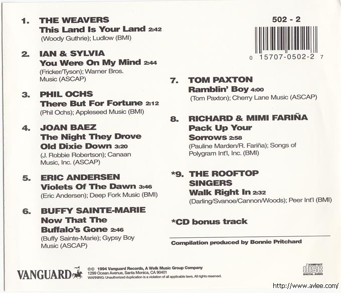 JAZZCD名称:Legendary Folk Singers艺术家名称:Various Artists发行公司:VANGUARD发行编号:502-2发行日期:1994年
