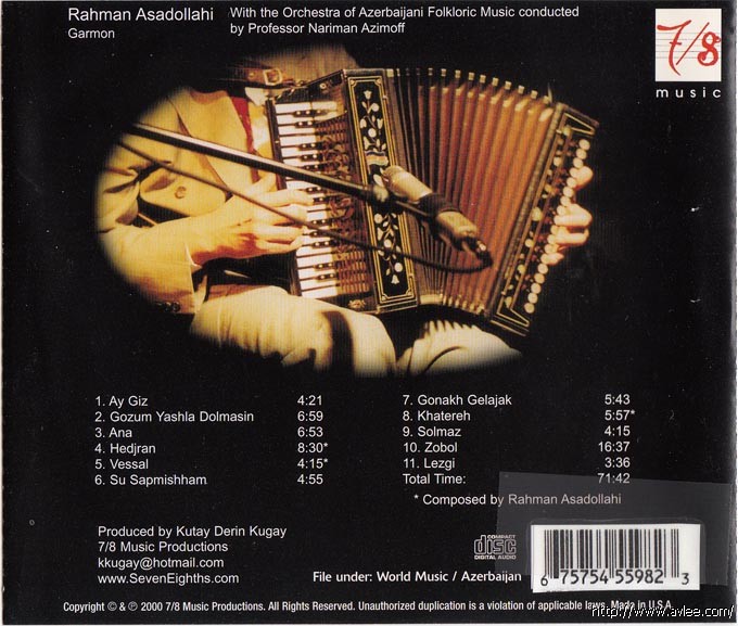 JAZZCD名称:Ana 艺术家名称:Rahman Asadollahi 发行公司:7/8 Music Productions 发行编号:110006发行日期:2000年