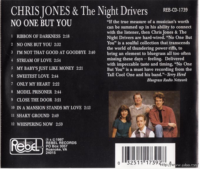 JAZZCD名称:No One But You 艺术家名称:Chris Jones发行公司:REBEL RECORDS发行编号:REB-CD-1739发行日期:1997年