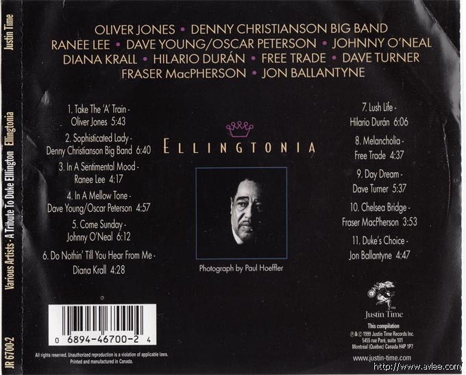 JAZZCD名称:Ellingtonia: A Tribute To Duke 艺术家名称:Various Artists发行公司:JUSTIN TIME发行编号:JR 6700-2发行日期:1999年