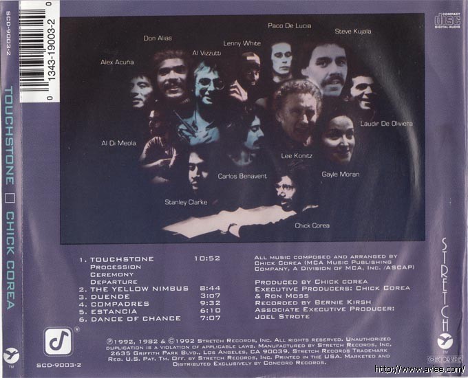 JAZZCD名称:Touchstone 艺术家名称:Chick Corea发行公司:STRETCH发行编号:SCD-9003-2发行日期:1992年