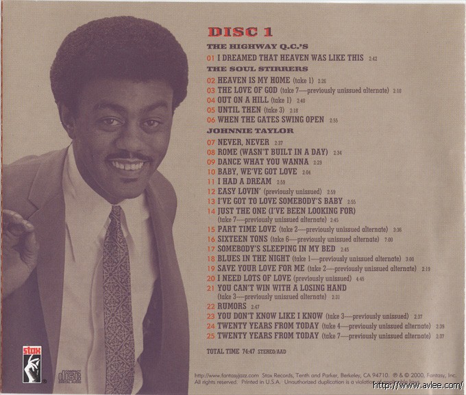 JAZZCD名称:Lifetime 艺术家名称:Johnnie Taylor 发行公司:STAX发行编号:3SCD-4432-2发行日期:2000年