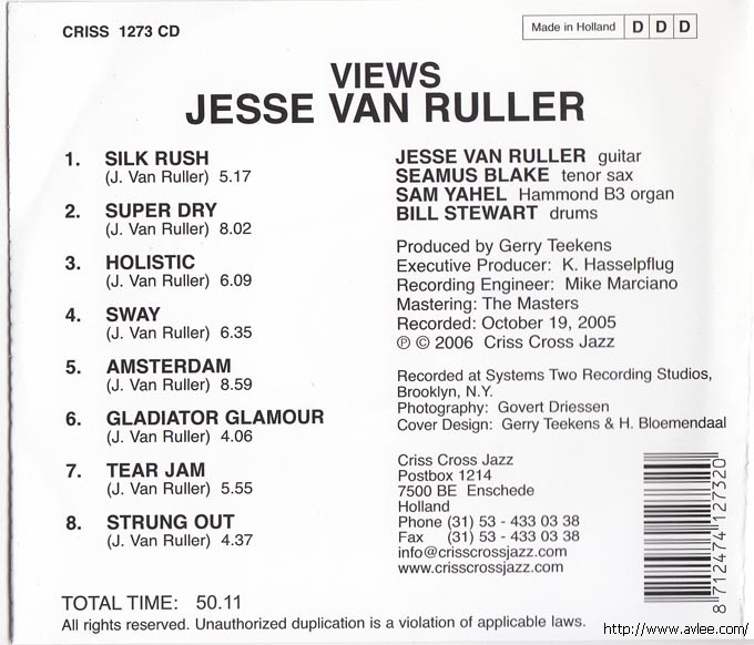 JAZZCD名称:Views 艺术家名称:Jesse Van Ruller发行公司:criss cross 发行编号:CRISS 1273 CD发行日期:2006年