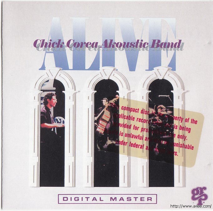 JAZZCD名称:Alive艺术家名称:Chick Corea's Akoustic Band 发行公司:GRP RECORDS发行编号:GRD-9627发行日期:1991年