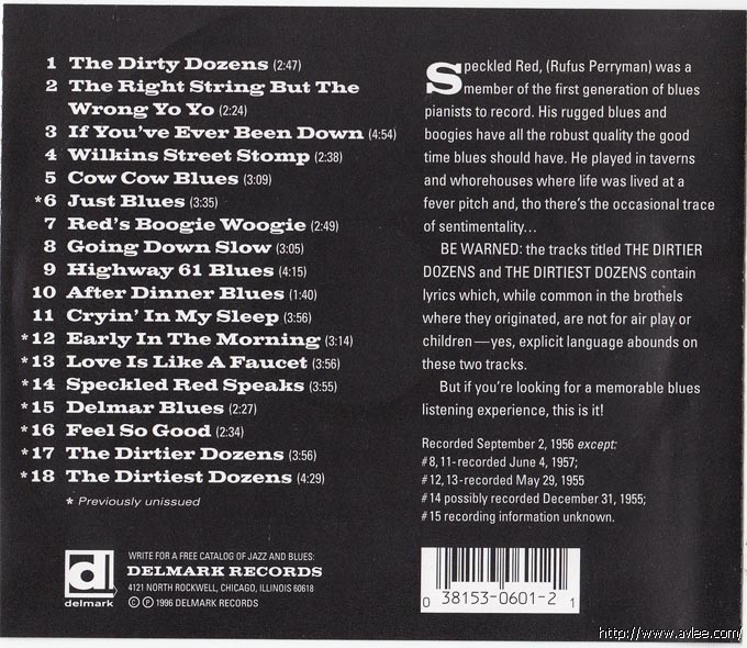 JAZZCD名称:Dirty Dozens 艺术家名称:Speckled Red发行公司:DELMARK发行编号:DE-601发行日期:1996年