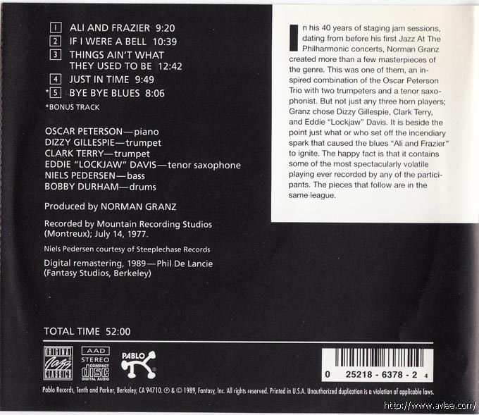 JAZZCD名称:Montreux '77 (Oscar Peterson Jam) 艺术家名称:Oscar Peterson发行公司:PABLO LIVE发行编号:OJCCD-378-2发行日期:1989年