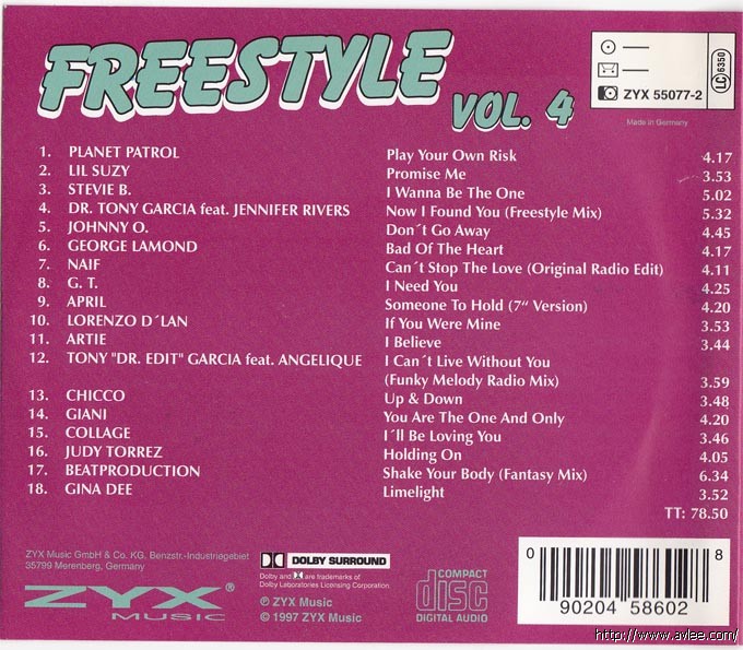 JAZZCD名称:Freestyle, Vol. 4 艺术家名称: Various Artists发行公司:ZYX MUSIC发行编号:ZYX 55077-2发行日期:1997年