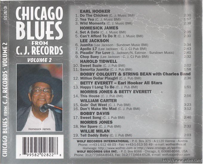 JAZZCD名称:Chicago Blues From C.J. Records Vol. 2 艺术家名称: Various Artists 发行公司:WOLF 发行编号:120.282 CD 发行日期:1997年 唱片美图: