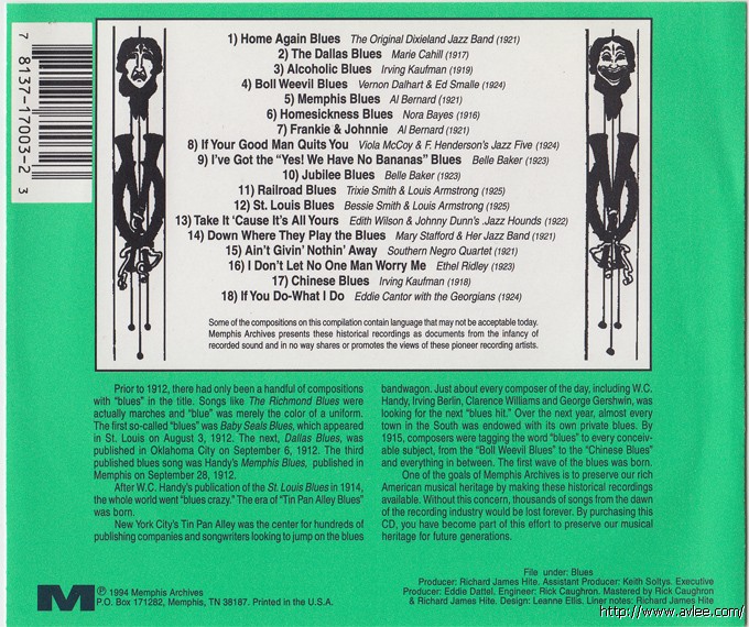 JAZZCD名称:Tin Pan Alley Blues 艺术家名称:Various Artists发行公司: Memphis Archives 发行编号:MA 7003发行日期:1994年