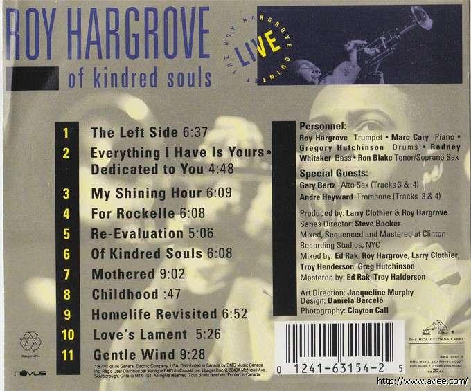 JAZZCD名称:Of Kindred Souls 艺术家名称:Roy Hargrove发行公司:Novus 发行编号:01241631542发行日期:1993年