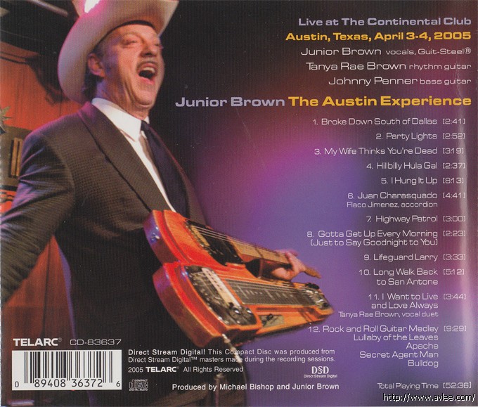 JAZZCD名称:Live at the Continental Club: The Austin Experience 艺术家名称:Junior Brown 发行公司:Telarc 发行编号:CD-83637发行日期:2005年